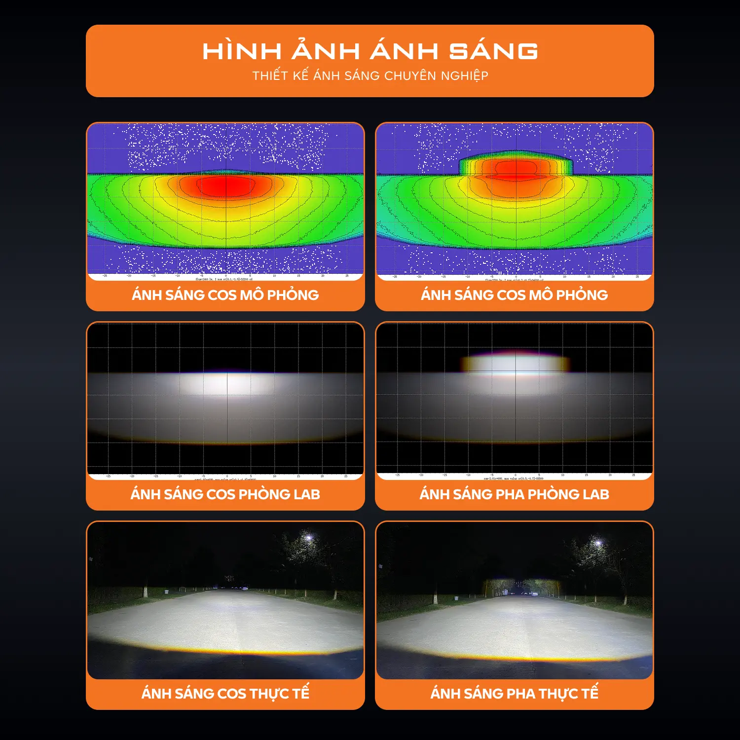 Nguồn sáng cos: 2pcs 6 chips 55*55mil + 2 pcs 3 chips 60*68mil